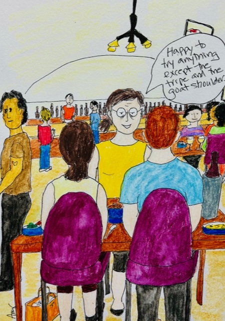 The point of this narrative, however, is that the experience did put me out of my comfort zone and I consider that a very good thing to do periodically, for anyone but especially if you’re a senior citizen. You, hopefully, become more flexible and resilient and those seem like admirable traits to have in these challenging times. So, to everyone, I encourage you to try something totally different from your normal taste or interest–a new restaurant, a different type of play or movie, a gallery or museum show with art you would otherwise never see, a visit to a different part of town. I think you’ll find that it’s all pretty exhilarating. It should be noted, however, that I didn’t push all boundaries. For instance, I didn’t eat the tripe or goat shoulder on the menu.